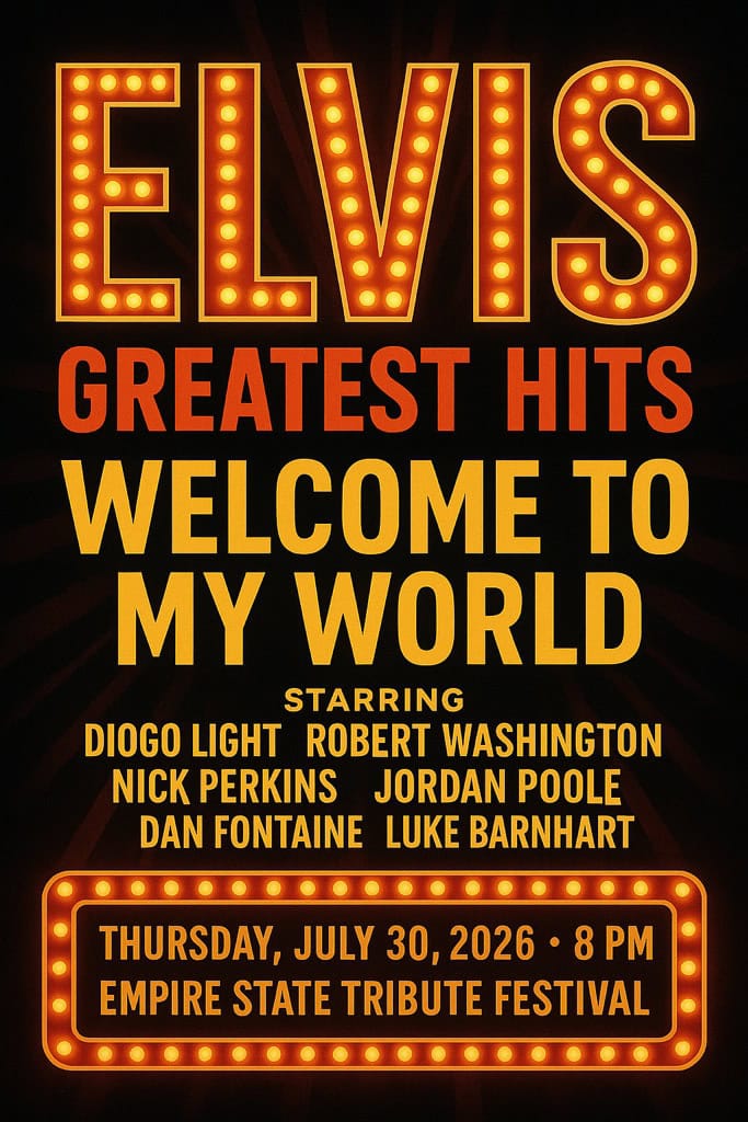 As presented at the 2025 Las Vegas Summer Tribute Festival at the Westgate Resort and Casino! This concept concert imagines an alternate universe where Elvis retired in 1977 due to the health concerns of his closest friends… more than 10 years later, at the age of 53, a healthier, happier Elvis Presley returns to the stage with a live televised special! Backed by the EAS Band. This show will be something different and may not appeal to the Elvis purists…. but you won’t want to miss your only chance to see it in 2026!!!